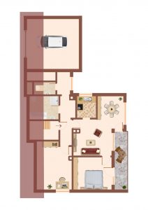 Diese hübsche Wohnung befindet sich im ersten Obergeschoss, bzw. Dachgeschoss eines gepflegten Zweifamilienhauses.